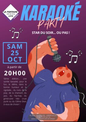 Catégorie: General Karaoké à Fontaine Arts et Vins Karaoké à Fontaine Arts et Vins 20 h 00 min – 21 h 00 min25 octobre 2025 Fontaine Arts et Vins19 rue de l'égliseJullié, 698400675876216View LocationCarte Fontaine Arts et Vins iCal Calendrier Google Voir le calendrier complet